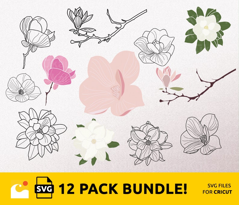 Instant Download of High Quality Elegant Magnolia Flower Svg, Floral Spring Decor, Flower Line Art, Digital File.