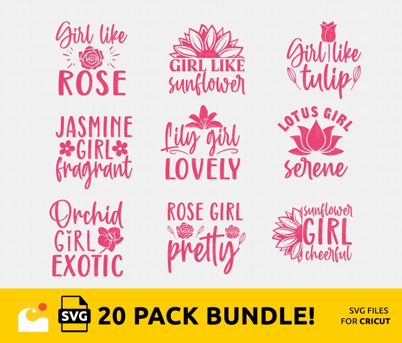 Flowers Girl Bundle svg files for Cricut is a digital download that includes 20 floral svg files that you can use with your cutting machine to make beautiful projects for your girl or flower girl. The bundle features different flowers and quotes that are perfect for cards, invitations, shirts, gifts, or any other project. Flowers Girl Bundle svg files for Cricut is easy to use and comes in various format svg. You can also mix and match different elements from the bundle or other svg files to create your own custom design. Download it today and enjoy the beauty of girl and flowers!