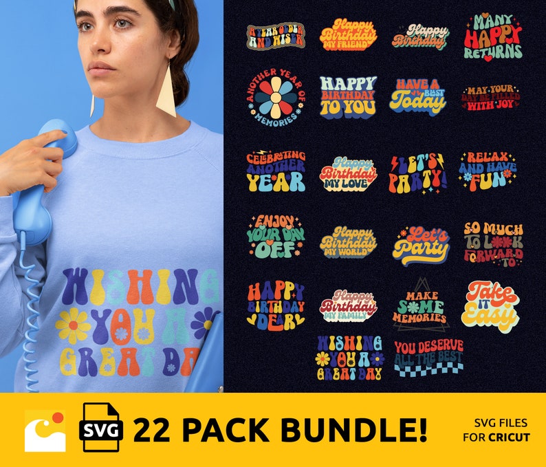 Instant Download of High Quality Happy Birthday SVG Bundle - Vintage and Retro Birthday Party Designs.