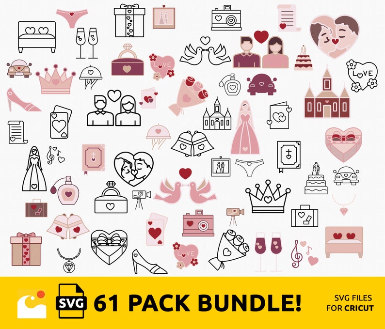 Wedding Svg Bundle Files For Cricut, Wedding Cliparts, Bride Clipart, Valentines Day Clip Art, Valentine Icons, Love Clipart